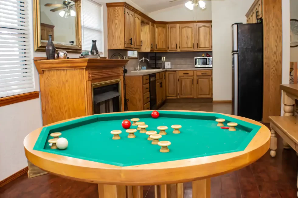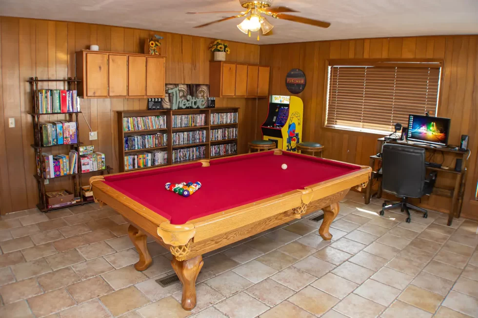 The pool tables, board games, arcade and large selection of DVD entertainment will provide engagement and entertainment for all ages. Not to mention the blazing fast WIFI internet for work or play. This large family vacation spot has it all with many updated a state of the art technology to make your stay easy and enjoyable.